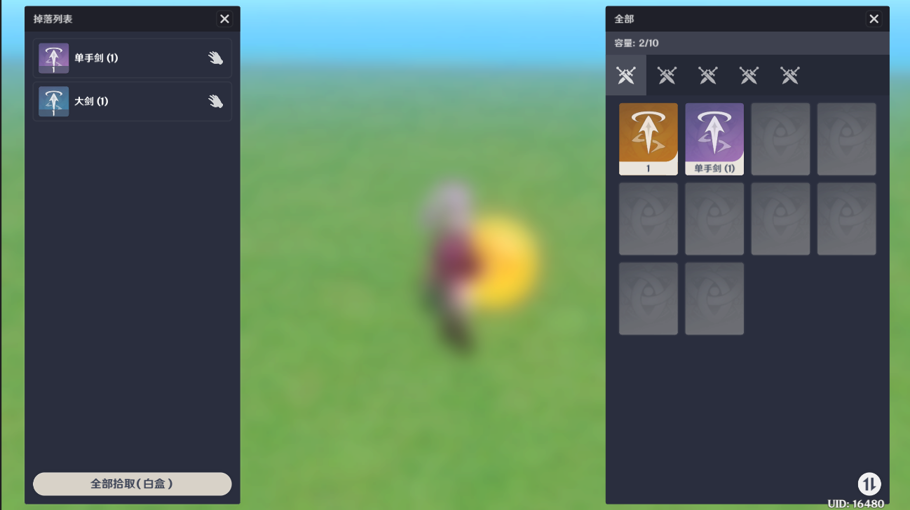 打开拾取界面:角色靠近掉落物至拾取范围内时,会显示交互按钮,触发交互按键会打开道具拾取界面,用户需要在界面内选中对应道具进行拾取,推荐用于掉落物列表内包含多个物品时使用