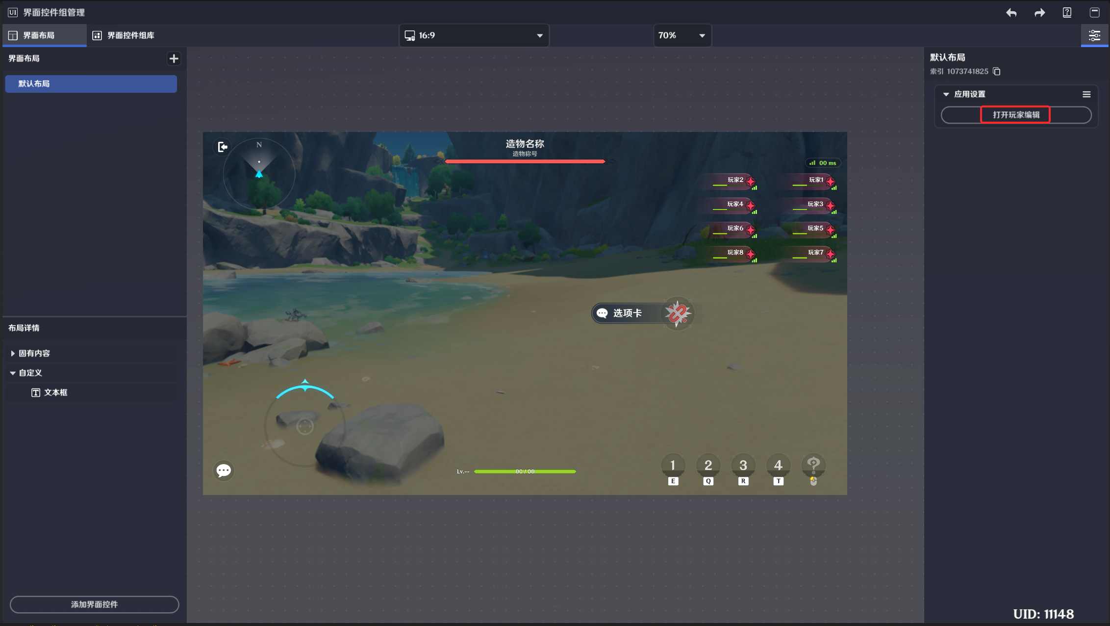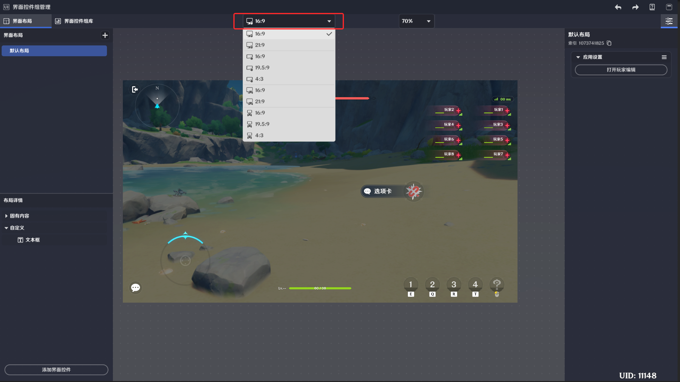 界面布局依赖玩家运行,运行时每个玩家有且仅有一个生效的界面布局。