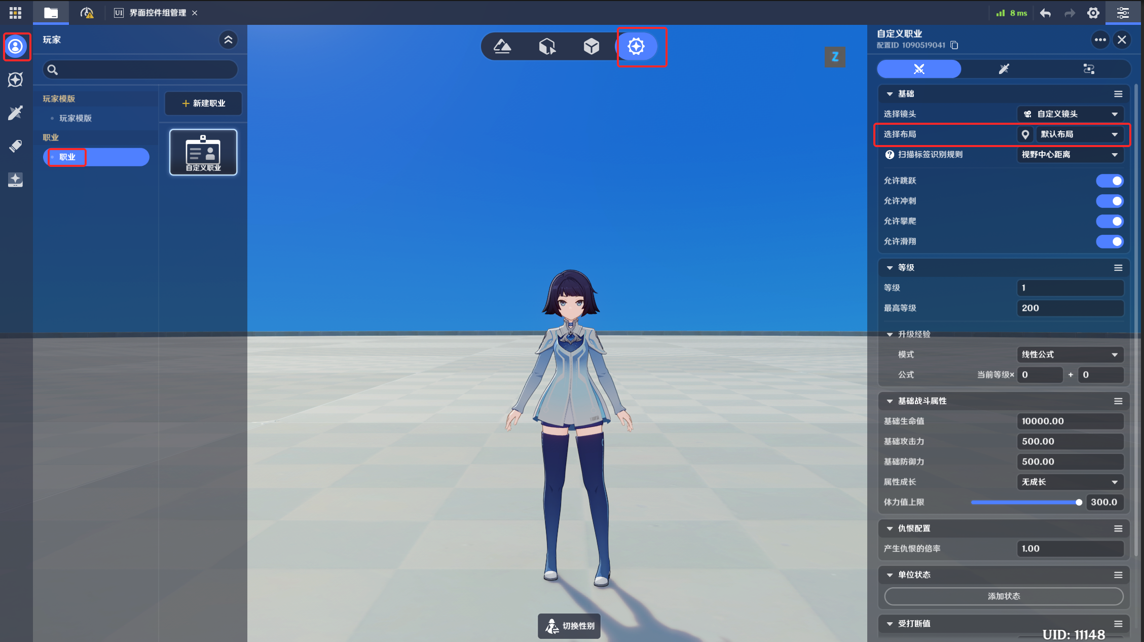 玩家在关卡游玩时使用的界面布局,需要通过职业进行配置。